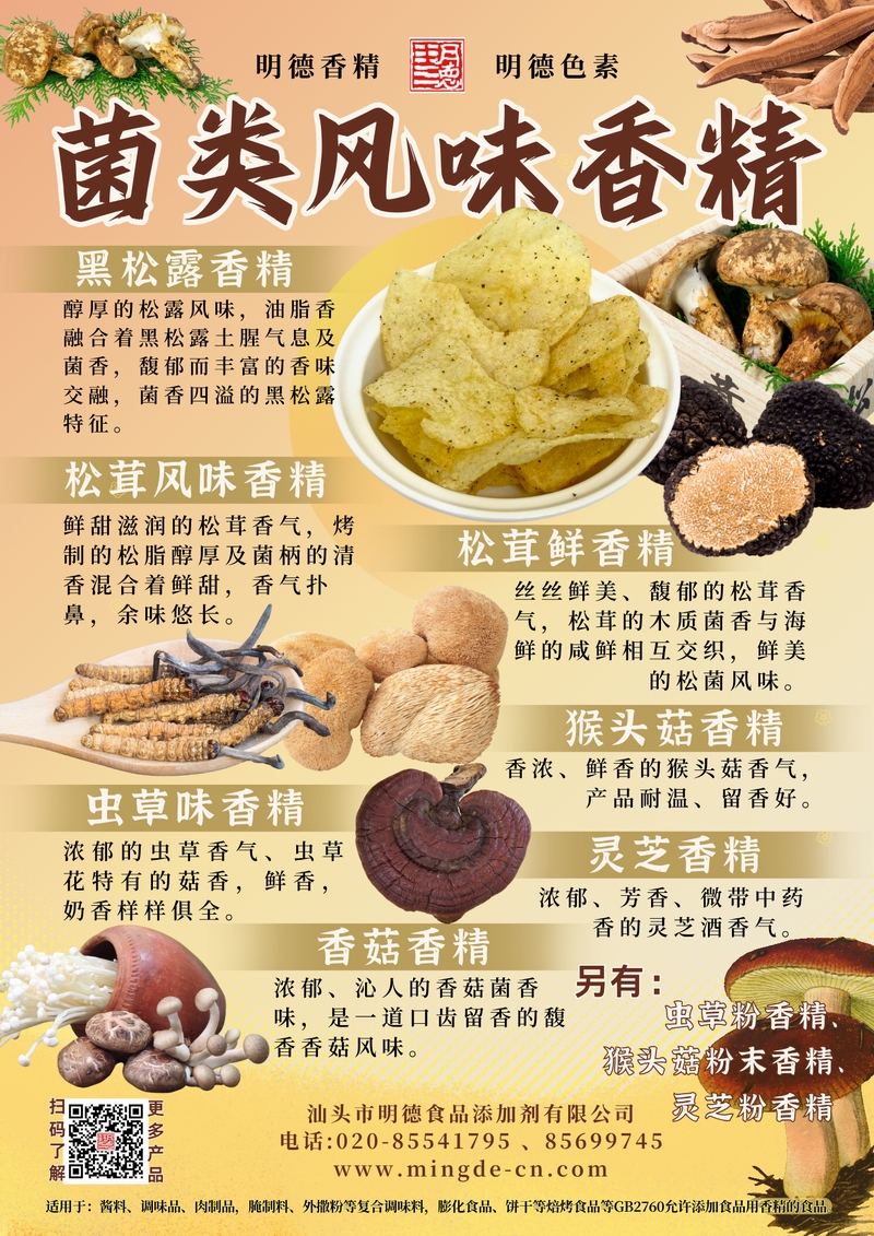 另有:蟲草粉香精、猴頭菇粉末香精、靈芝粉香精